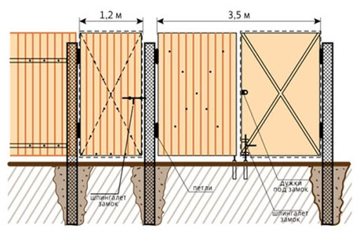 Un portail composé d'une planche de terrasse, d'un rail, d'une palissade est conçu pour qu'une personne de toute taille puisse y passer librement, transporter un bagage à main sur un chariot. Les dimensions standard de l'ouverture en largeur sont de 1 à 1,2 mètres.