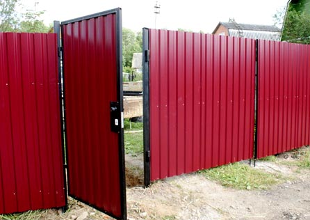 - Faible poids et installation facile. L'installation d'un portillon en tôle profilée prend 1 à 1,5 jours si les supports sont préparés à l'avance.