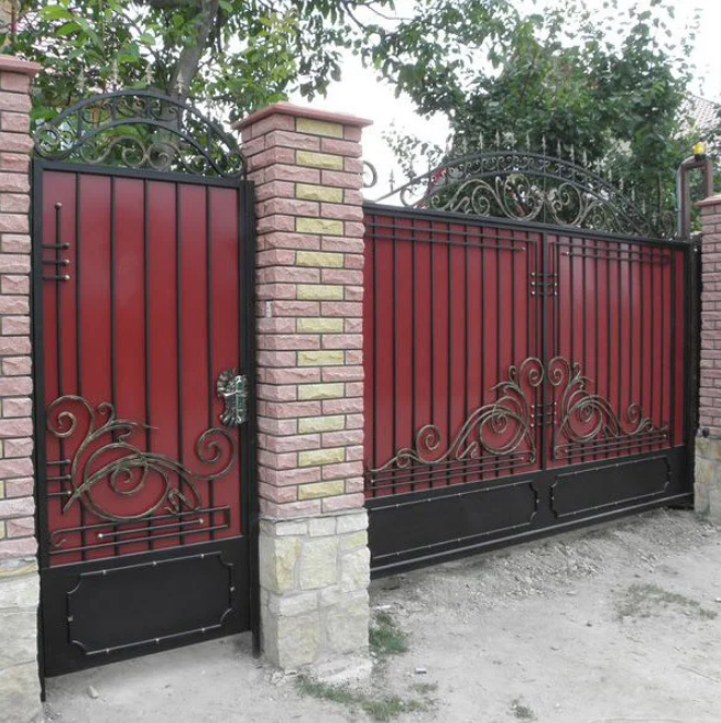 Le passage est fait uniquement pour une voiture ou combiné en une seule structure avec un passage pour les personnes. La deuxième option est répandue et populaire, car la construction d'un guichet séparé est associée à des coûts supplémentaires. Il vous faudra du matériel pour les poteaux, du bétonnage, qui n'est pas nécessaire si le passage se fait dans le vantail de la porte.