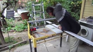 L'étape suivante consiste à commencer à découper le profilé en aluminium. À l'aide d'une scie à métaux pour le métal, vous devez couper 2 morceaux pour les poteaux verticaux et deux pour les bandes horizontales.