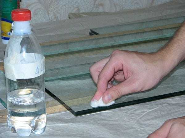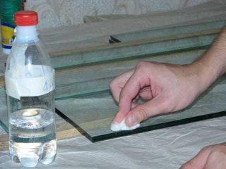 - Préparez la surface autant que possible. Il doit être parfaitement propre. Pour enlever la saleté, utilisez des nettoyants pour vitres, des éponges douces, de l'alcool et des solvants. Les bords du verre doivent être dégraissés.