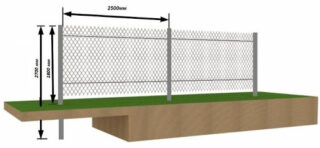 Ce type de tension est pertinent sur un terrain plat, et sur une pente, il est préférable de réaliser une clôture sectionnelle à partir d'un maillon de chaîne afin de prendre en compte les différences de hauteur.