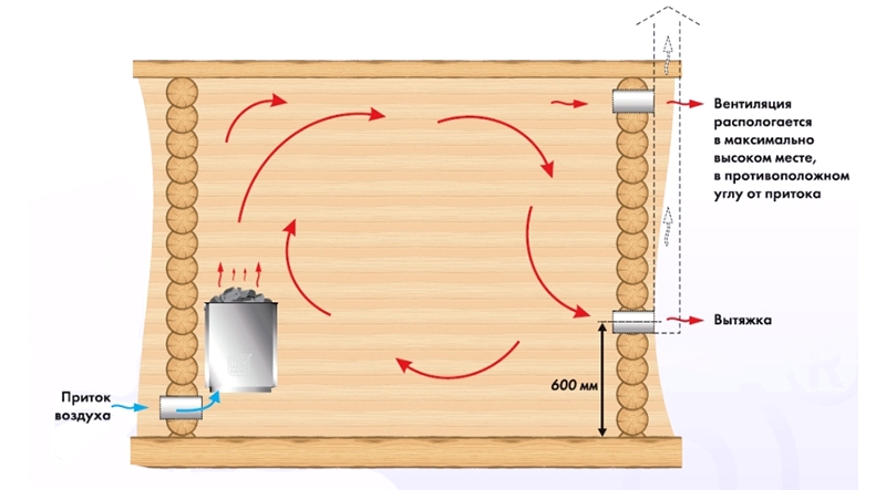 La disposition de la ventilation dans le bain garantit un microclimat optimal et une longue durée de vie du bâtiment. Une ventilation insuffisante est à l'origine de l'accumulation d'humidité, de la pourriture du bois, de l'apparition de moisissures, de la destruction des matériaux de finition.