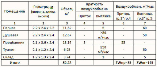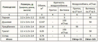 - L'air dans le hammam doit être complètement renouvelé en 2 à 4 heures - dans une pièce d'une capacité cubique de 6,3 m³ par heure doit passer de 1,6 m³ à 3,2 m³.