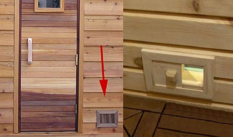 - Dans les petites pièces, 1 trou pour l'alimentation et l'évacuation est suffisant. Calculez leur superficie à l'aide des formules. Pour chaque mètre cube de cabine de sauna, il y a une ouverture de ventilation de 24 cm².