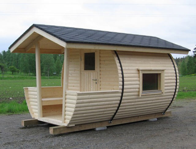 Cette option attire principalement par son design inhabituel. En apparence, la structure ressemble à un tonneau couché sur le côté. Parfois il a un toit, mais le plus souvent la structure s'en passe : la pente de la surface ne permet pas à l'eau et à la neige de s'y accumuler.