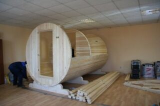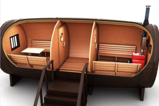 Le design peut être encore plus grand : avec un diamètre de 2,5 à 3 m, il peut atteindre 6 m de long. Dans ce cas, il s'agit d'un complexe de sauna à part entière avec un hammam, une salle de lavage et un vestiaire.