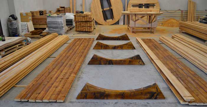 Seuls les bois durs sont choisis pour la construction. Le bois de pin et d'épicéa contient trop de résine. Lorsque la température augmente, la résine se libère et contamine la surface. La planche devient trop chaude et absorbe la saleté.