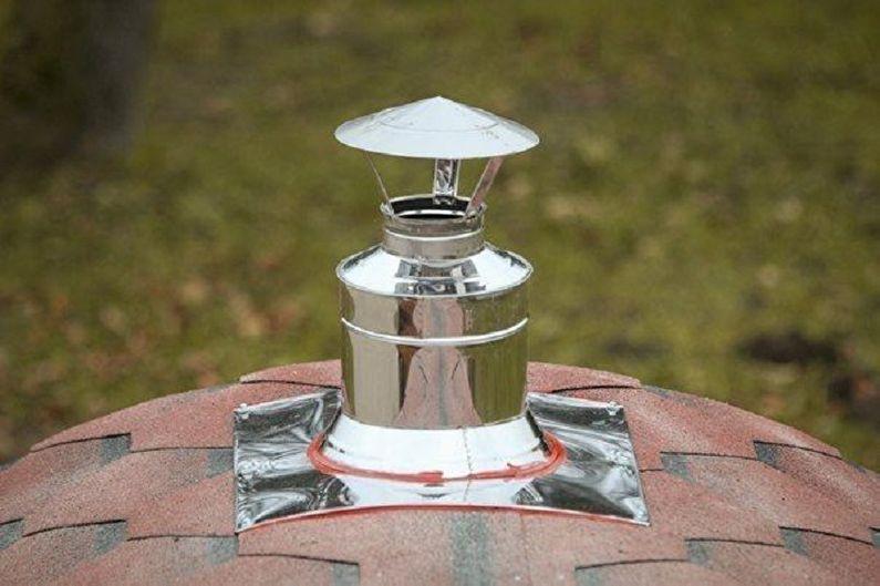 - Pour cette conception, les fours les plus compacts sont choisis, généralement en acier ou en fonte. Le corps du four peut être encastré dans une brique ou une caisse en bois. La cheminée d'un tuyau en acier est dirigée vers le toit conditionnel du bâtiment. Les murs et le sol autour du poêle sont recouverts d'une protection thermique - feuille d'amiante ou de minérite.