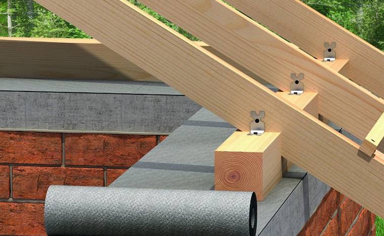 Lorsque le toit est construit sur les murs à ossature, les chevrons ne sont pas fixés au garage Mauerlat, mais au cerclage supérieur des supports.Lors de la préparation d'un projet, n'oubliez pas cette fonctionnalité. Les pattes de fixation du Mauerlat sont organisées lors de la construction des murs. Vous pouvez également trouver des toits sans toit pour le garage. Dans ce cas, l'accent est mis sur des frontons triangulaires en briques.