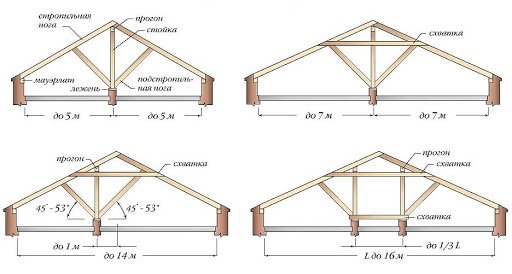 L'exécution des deux types d'ouvrages pour les petites portées (5 m et moins) est simple et concise. Pour les toitures plus grandes, le système devient plus complexe, des supports supplémentaires et d'autres éléments apparaissent.
