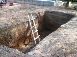 - ils creusent une tranchée de ruban à l'aide d'une excavatrice, nivellent le fond de la fosse manuellement;