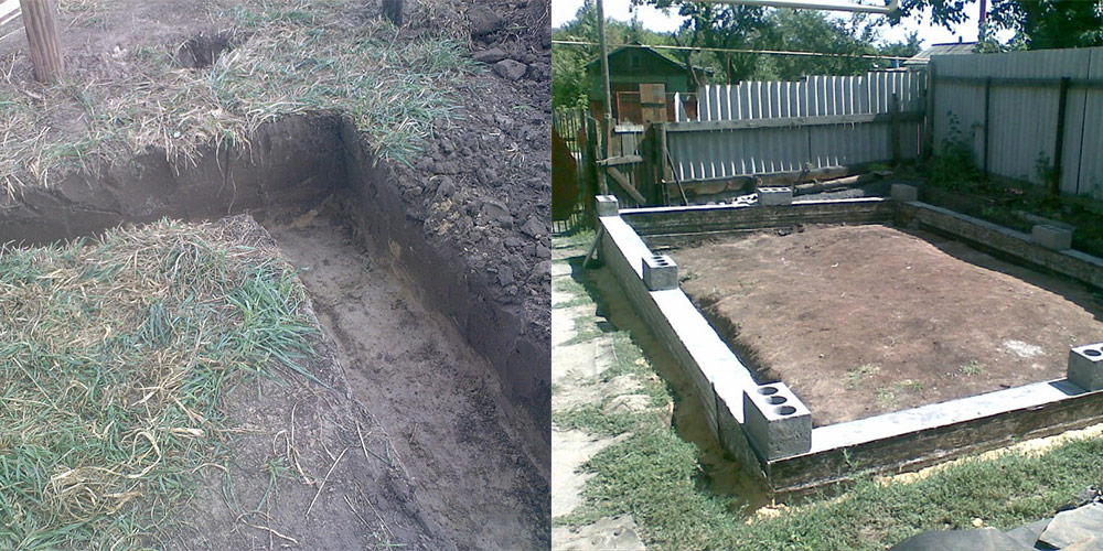 Les étapes et les règles pour construire un garage à partir d'un parpaing de vos propres mains sont généralement les mêmes que pour les autres structures domestiques faites de matériaux de parpaing. Ils commencent le travail avec la préparation de la fondation.