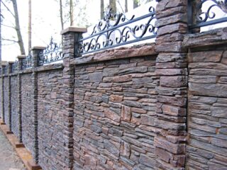 Vous pouvez réduire les coûts de construction en érigeant une clôture en pierre artificielle. Un tel matériau est fabriqué à partir de résines acryliques, de copeaux de pierre ou de béton peint.