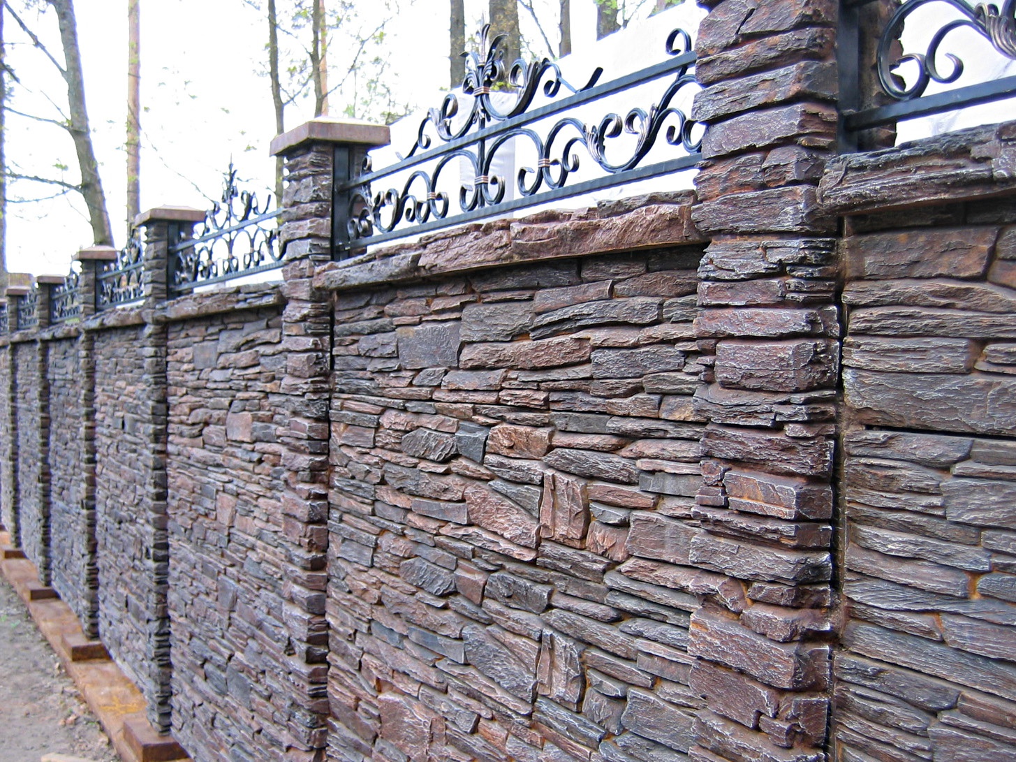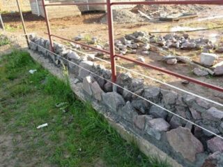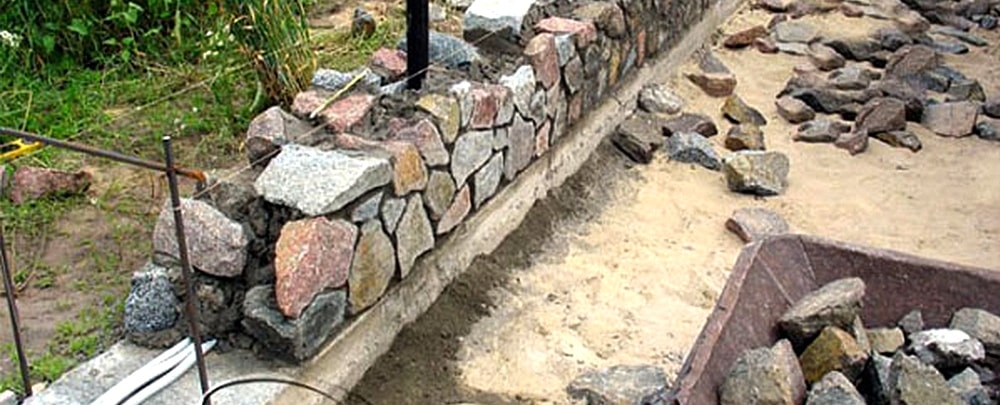 - Fondation. Le poids de la pierre étant important, la base doit être solide. Le non-respect de la technologie de son installation entraînera un affaissement rapide et la destruction de la clôture.