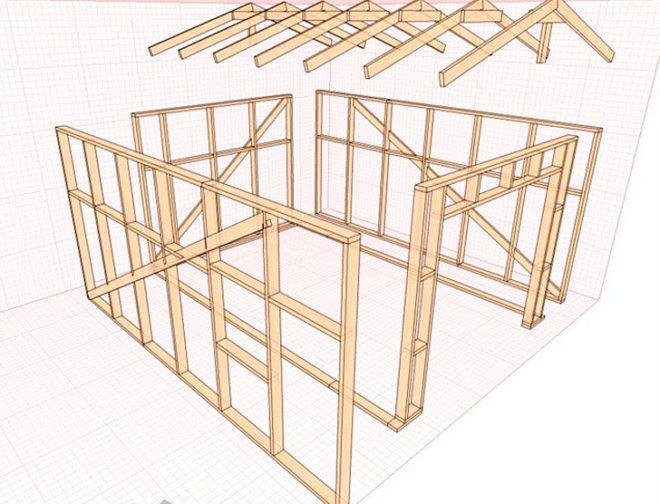 - le poids léger des murs permettra de se passer d'une fondation puissante, vous pouvez faire des piliers, un peu de ruban adhésif en retrait ou des pieux vissés;