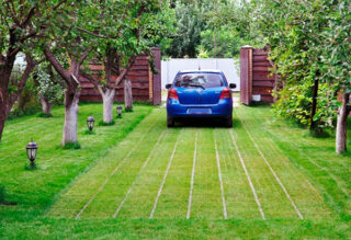 Vous pouvez utiliser la zone de la grille de pelouse tout de suite, mais vous devez garer la voiture avec un décalage pour que l'herbe germe.