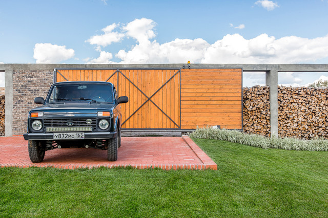 - L'emplacement du parking est choisi directement derrière l'entrée, ce qui permet d'économiser de l'espace interne et de l'argent pour organiser le chemin du parking à la maison.