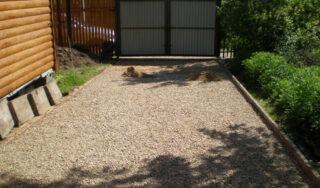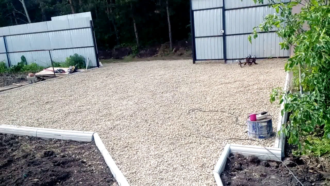 Un moyen pratique, peu coûteux et rapide d'aménager un parking pour une voiture à la campagne consiste à remplir la surface d'une fine fraction de pierre concassée ou de gravier.
