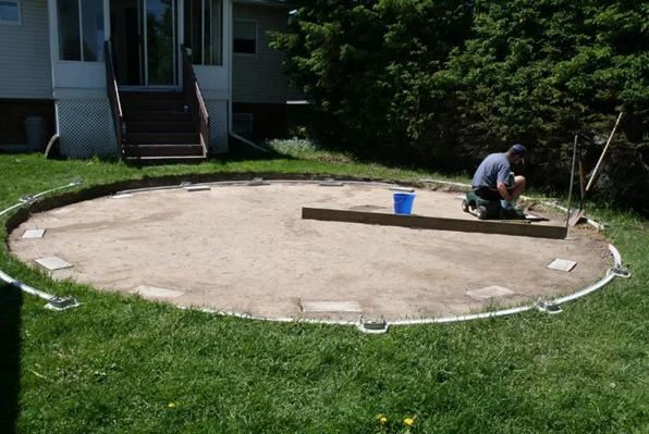 - afin d'atteindre le niveau souhaité de rehaussement du bord de la piscine, ils font un lit de pierre concassée, du sable, parfois du ciment est ajouté au mélange sec ;