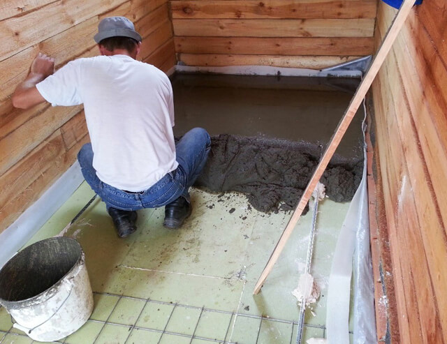 La construction du sol dans la baignoire diffère des méthodes standard utilisées dans les bâtiments résidentiels. Le platelage du hammam et de la salle de bain est considéré comme faisant partie du réseau d'égouts. Un revêtement bien exécuté gardera au sec non seulement la couche supérieure, mais également les zones sous-jacentes avec des poutres porteuses et un sous-plancher.