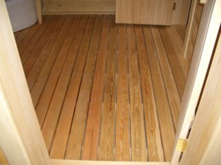 L'élimination rapide de l'eau empêchera le développement de micro-organismes, de moisissures, de pourriture et prolongera la durée de vie du bain. Il existe de nombreuses méthodes pour poser le sol dans un sauna, le propriétaire choisit donc celle qui convient à l'environnement. La construction complexe du sous-plancher nécessite un projet distinct.