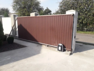 Les portails coulissants suspendus prêts à l'emploi de vos propres mains peuvent être fournis avec un kit automatique. Ils peuvent être ouverts et fermés par télécommande. Dans ce cas, aucun effort physique n'est requis.