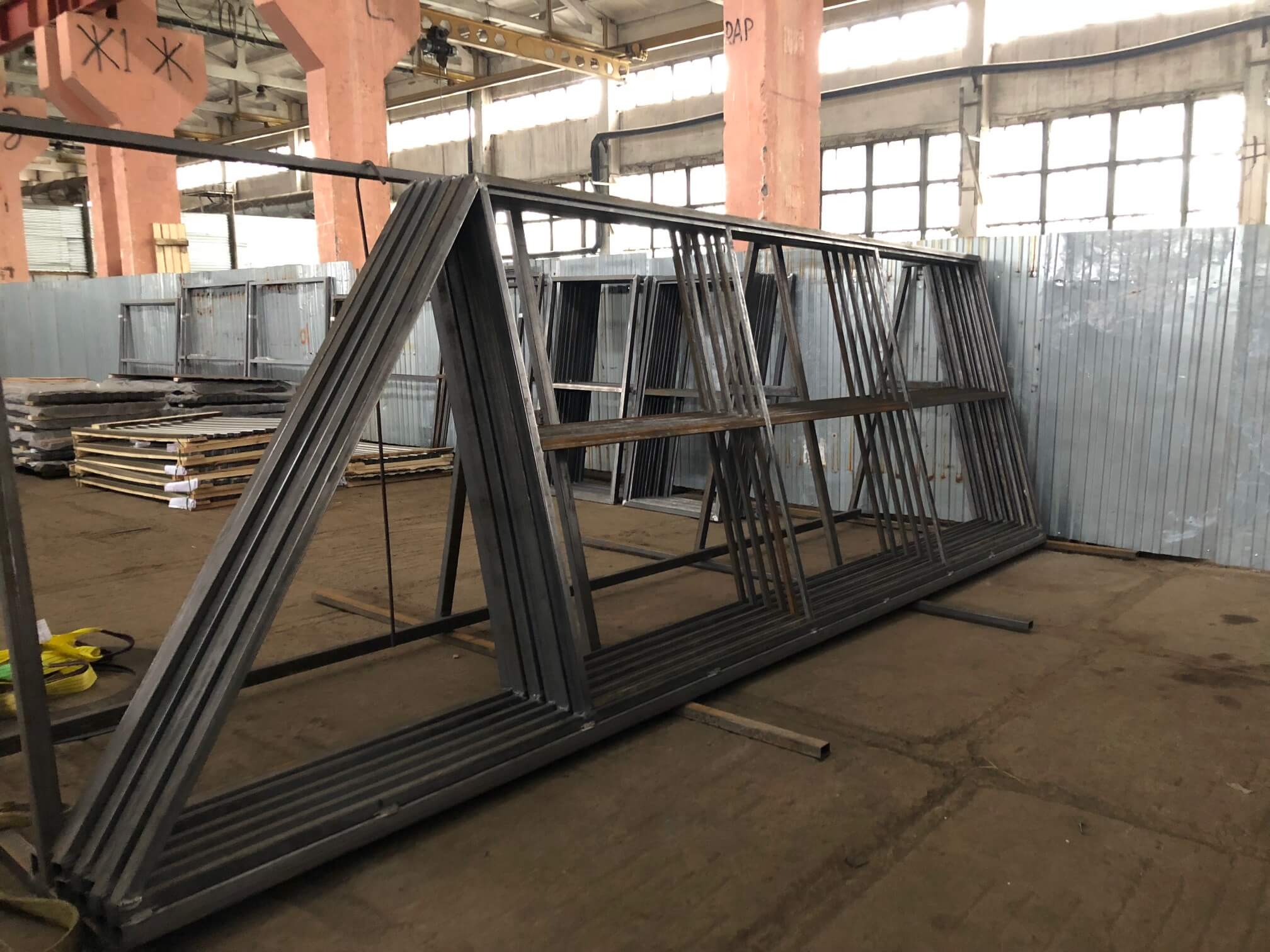 Parmi les outils, le maître aura besoin d'une meuleuse et d'une machine à souder. Habituellement, le modèle monté a un châssis. Si la largeur du produit est inférieure à 3 mètres, il n'est pas nécessaire de réaliser le deuxième vantail. Habituellement, cette largeur est suffisante pour qu'une voiture puisse entrer.