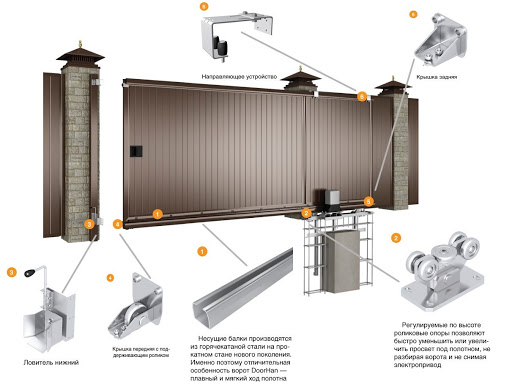 Les portails coulissants à charnières à faire soi-même sont complétés par des ferrures. Un certain nombre de facteurs sont pris en compte lors du choix des pièces.