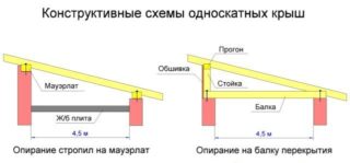 La principale caractéristique d'un toit à une pente est la présence d'un support sous les bords des pieds des chevrons. Dans cette conception, les chevrons sont des poutres ordinaires, posées à un léger angle, permettant d'éliminer les précipitations gratuites à tout moment de l'année.