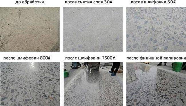 - Polissage. Cet événement est réalisé dans le but de préparer un sol en béton comme base indépendante sans autre finition. L'obtention de la résistance et de la résistance est due à l'ajout d'additifs polymères, qui sont frottés dans la couche extérieure de la plaque, tout en amenant sa surface à une douceur absolue.