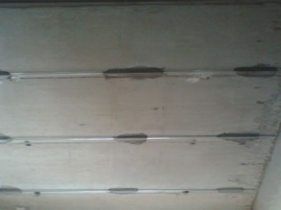 Les dalles de plancher ont la particularité de fléchir sous leur propre poids pendant le fonctionnement. Pour éviter la formation de fissures, un cerclage en filet de nylon doit être collé sur toute la surface du plafond fini.