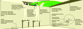 Il est nécessaire de bien masticer le plafond en une seule fois, afin que le revêtement soit monolithique, sans fissures ni délaminage. Un approvisionnement suffisant en matériel et en temps doit être maintenu.