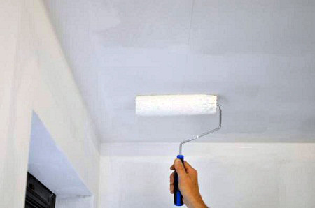 Une fois le plafond complètement sec, vous pouvez le peindre. La meilleure option est la peinture à base d'eau, qui est totalement sans danger pour la santé, s'adapte parfaitement à la base, a une belle apparence et est facile à nettoyer. Vous devrez appliquer deux couches - la première le long de la ligne de la fenêtre et la seconde vers celle-ci. Si une plinthe est fournie, elle est collée après application d'un apprêt et peinte avec le plafond.