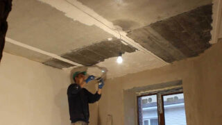 La méthode de vissage est utilisée dans les cas où des dalles grandes et massives sont utilisées pour effectuer l'insonorisation du plafond dans le système de tension, ou le revêtement de la dalle n'est pas assez solide pour supporter un poids important. La spécificité de cette technologie réside dans le fait qu'elle nécessite au moins deux personnes pour la réaliser. L'un doit tenir la plaque uniformément et l'autre doit la visser à la base. Si vous travaillez seul, vous devrez utiliser de la colle pour fixer les fragments sur la plaque, ce qui est essentiellement un déchet supplémentaire. La fixation est réalisée avec des chevilles à disque, qui sont enfoncées dans les coins et au milieu. S'il reste des espaces, ils sont soufflés avec de la mousse de polyuréthane, dont l'excès, après durcissement, est coupé avec un couteau de bureau.