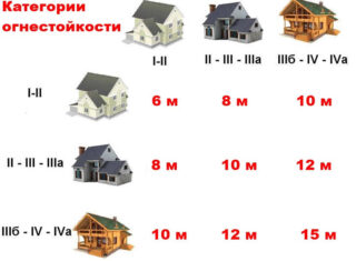 La distance entre les habitations, les dépendances, les espaces verts et une clôture est réglementée. Cela prend en compte la matière. La distance entre les bâtiments en bois est toujours plus grande qu'entre ceux en pierre, car l'arbre brûle bien.