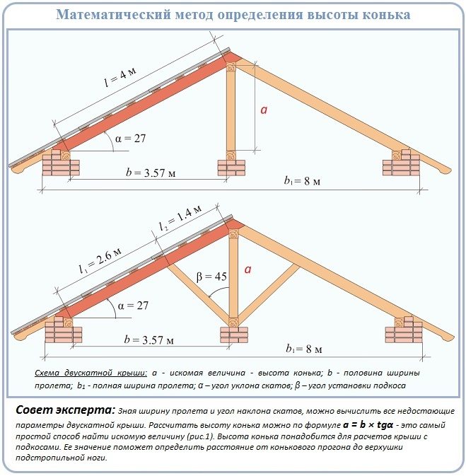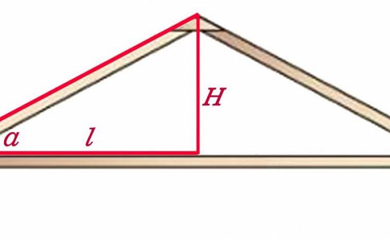 L'auteur transporte une sorte de détritus abscons (tangentes-cotangentes ...) Il existe des normes de base pour la construction d'un téléviseur, par exemple, dans un immeuble résidentiel, un escalier mesure 15 cm de haut et 30 cm de haut. marche et, en place, comme il s'avère ! De plus, une maison d'habitation individuelle a une hauteur de faîte standard et égale - la longueur des chevrons - 3/5 de la largeur +50 cm ! Une maison, disons 10 m de large, divisez par 5 et multipliez par 3, il s'avère -6m + 50 cm et ce sera la hauteur de base de la crête (le point où les chevrons sont connectés ! Et la maison aura l'air normalement - pas pressé et pas avec un toit surélevé! il faut regarder - le matériau du toit, la destination du grenier, etc.! QU'EST-CE QUI EST PLUS FACILE-3/5 LARGEUR + 50 CM !!