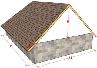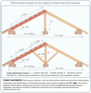 Ces calculs illustrent également la relation entre les dimensions du toit et l'angle de pente. Plus la structure est pointue, plus elle sera haute. Vous pouvez effectuer des calculs selon le même principe et selon le dessin, en indiquant les paramètres requis dessus.