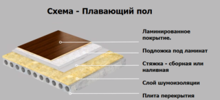 - Plancher flottant. La chape est séparée de la dalle par des couches d'humidité et d'isolant froid. La membrane polymère est placée sur les murs, une isolation thermique est placée sur le dessus, puis une chape humide est réalisée.