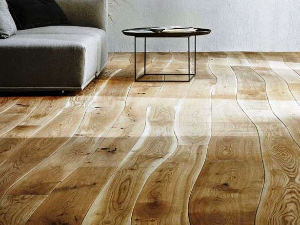 Le beau motif des fibres sur la coupe n'est pas teint, mais seulement verni, les compositions à l'huile sont appliquées sur des espèces moins décoratives. Les caractéristiques du revêtement sont influencées par la largeur des planches. Pour le sol, le bois est prélevé sur une longueur de 2,5 à 4 m, une largeur de 120 à 180 mm, tout en le posant de manière à ce qu'il y ait moins de joints d'extrémité. Les éléments étroits se déforment moins, de sorte que les planches larges sont fixées avec du matériel supplémentaire.