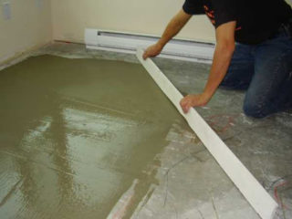 - Chape humide. Une simple couche de sable et de ciment comprend un treillis en plastique ou en métal pour le renforcement. Les mélanges secs prêts à l'emploi sont dissous avec de l'eau et versés dans la base du sol, tandis que le treillis n'est pas utilisé. Des fibres de renforcement et des additifs polymères ont été ajoutés aux sols autonivelants pour augmenter la résistance et la rigidité.
