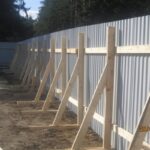 - fixés longitudinalement aux piliers de l'extérieur, des panneaux en tôle profilée y sont installés (clôture solide);