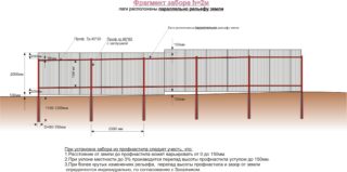 Ils font un brouillon de la clôture, où ils montrent le passage de la ligne de clôture, l'emplacement des routes d'accès, les arbres. Ensuite, la longueur des sections brisées, le cas échéant, des tours, du groupe d'entrée est déterminée. Ces informations sont appliquées au dessin. Les marques d'élévation du sol importent, ce qui nécessite une modification de la hauteur de la clôture à chaque site ultérieur, par conséquent, des supports supplémentaires doivent être installés.