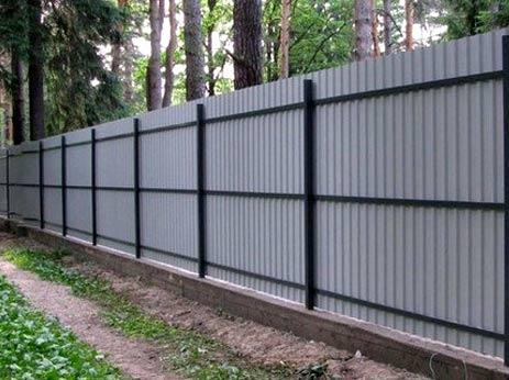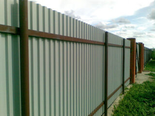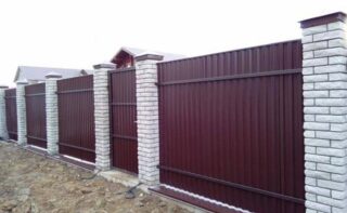 - Clôtures solides. Dans ce cas, les feuilles de la tôle profilée recouvrent les piliers. Ce type appartient à la catégorie des poids légers.