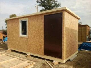 Les vestiaires assemblés à partir de boucliers sont faciles à fabriquer. La construction de telles structures ne prend pas beaucoup de temps, mais elles sont le plus souvent utilisées comme installations de stockage temporaires pour le stockage des stocks et des matériaux de construction.