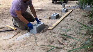 Au lieu de couler du béton sur le site, vous pouvez installer des blocs de fondation et y poser 2 à 3 couches d'imperméabilisation, par exemple un matériau de toiture.