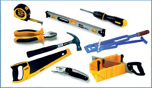 - outil de mesure : mètre ruban, équerre, fil à plomb, niveau ;