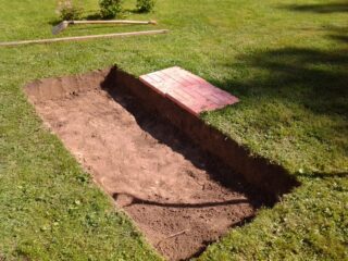 - Creuser une fosse de 30 cm de profondeur. Enlever les racines des plantes et les cailloux. Alignement du fond et compactage.