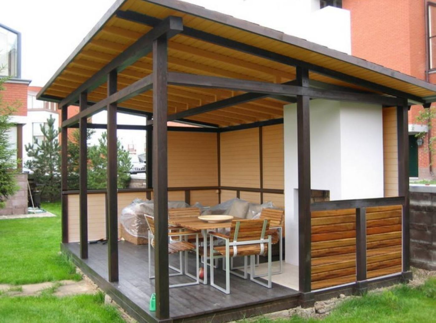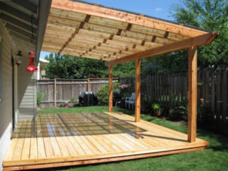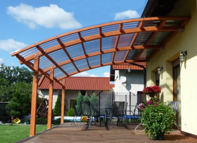 La structure articulée protège les objets ou les murs de la maison des processus destructeurs causés par l'humidité et les rayons ultraviolets. L'utilisation d'un tel dispositif de protection prolongera la durée de vie d'un bâtiment ou d'un véhicule. Une structure similaire peut être utilisée comme élément décoratif inclus dans l'ensemble du site. À cette fin, des structures en bois sont généralement installées.