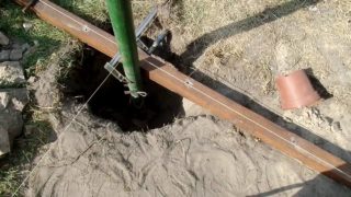Lorsque les fosses sont prêtes, une couche de drainage de 0,1 à 0,15 m de sable concassé y est déposée.Après l'avoir enfoncée, ils montent des tubes en plastique de diamètre approprié et montent les racks strictement verticalement. Ce dernier d'un côté doit être situé plus haut afin de créer une pente pour l'écoulement du liquide. Pour renforcer les éléments du rack, des accessoires sont utilisés. Un mélange de béton est versé dans les évidements (les tuyaux en plastique remplissant la fonction de coffrage). Les éléments de support sont unis par le cerclage supérieur. Dans la fabrication d'un cadre métallique, les éléments sont reliés les uns aux autres par une machine à souder. Le lattage peut être réalisé à partir d'un profilé.